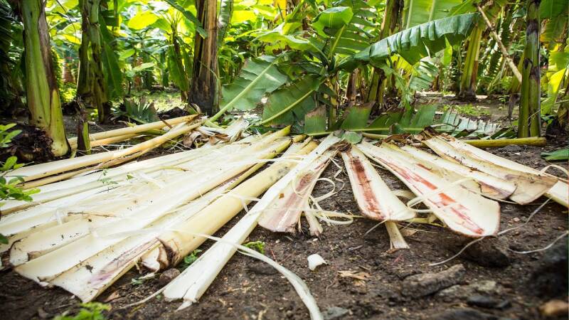 Nadat het fruit van bananenplanten is geoogst, gaan verschillende delen van de plant helaas vaak verloren.